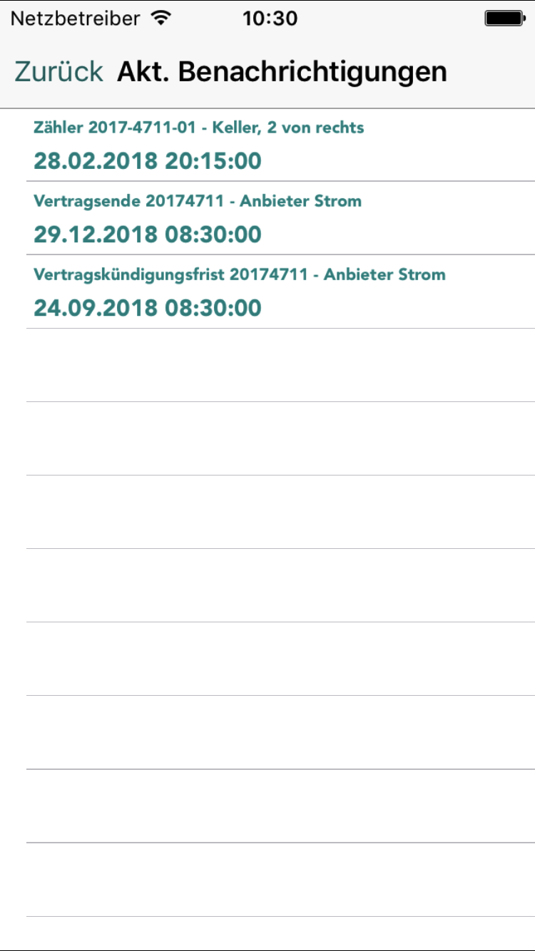 Hier sehen Sie welche Benachrichtigungen Sie in den Verträgen angelegt haben und wann diese das nächste Mal ausgeführt werden. Die Verwaltung erfolgt nur direkt über die Verträge.